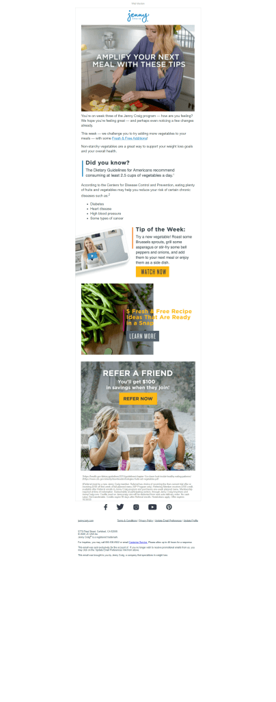I collaborated with the Senior Content Marketing Manager to create an email series sent to every new client to help introduce them to the Jenny Craig program.